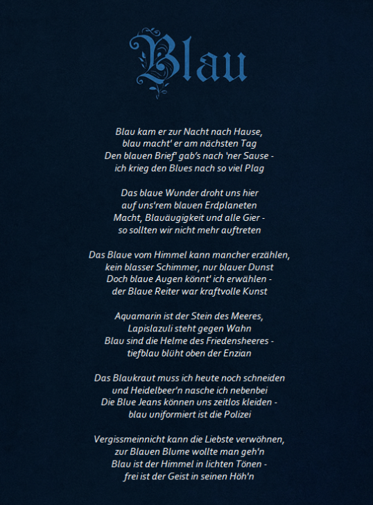 Das 'Blaue von Himmel' könnt' ich erzählen,
